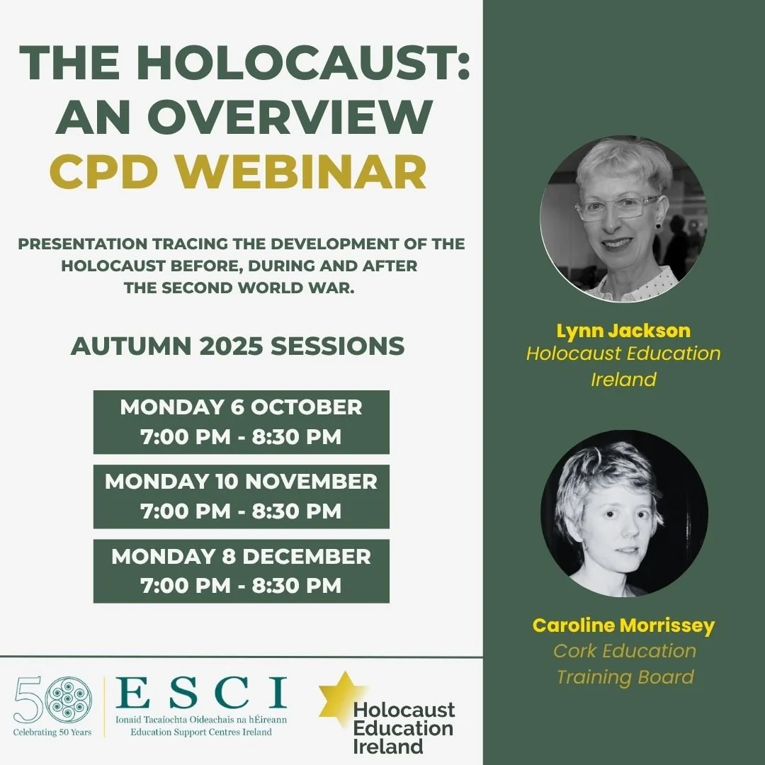 The Mary Elmes Prize in Holocaust Studies is named in honour of the only Irish person to receive the Righteous Among the Nations award. Senior Cycle students are invited to submit a History essay or artistic response (Art, Literature, Music) about any facet of the Holocaust that they would like to explore and raise awareness about.